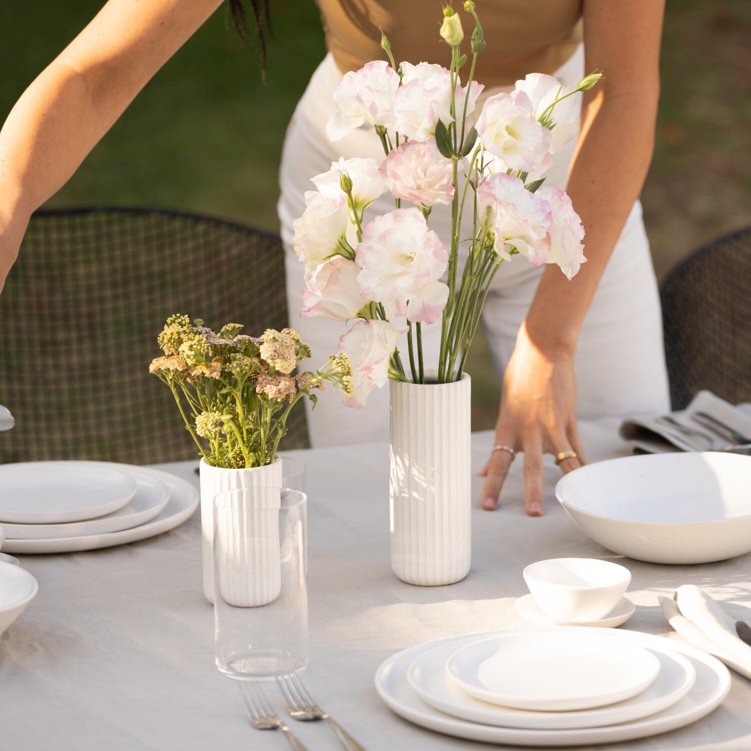From single stems to small bouquets, brighten any room with this petite, beautifully textured vase—or cluster it with The Tall Bud Vase as the finishing touch to your tablescape. A subtle rim inside helps flowers stand up straight.